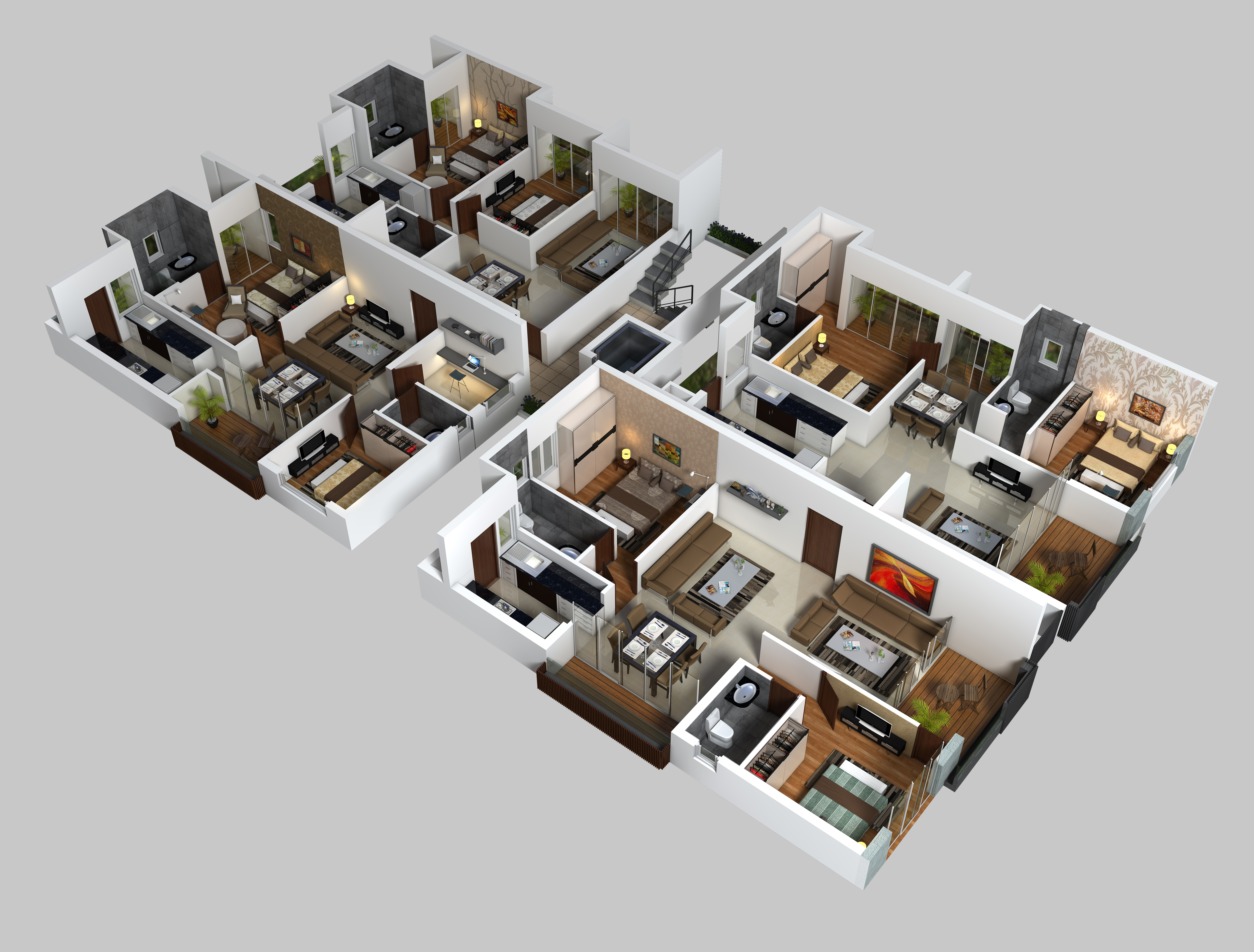 This is a luxurious apartments complex in the heart of Bangalore city. They are designed with high ventilation, lighted spaces for living, dining spaces and smart utilization of space. The roof top terrace design is with landscaping and solar panels.